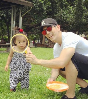 5月27日,贾静雯晒出与修杰楷带咘咘玩耍的照片,咘咘穿着吊带裙,越发漂亮了。