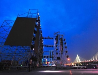 即将在本月18日在海口世纪大桥下举办的周杰伦天王天后演唱会,舞台搭建进入尾声,今夜正在调试灯光,一个字:惊艳!