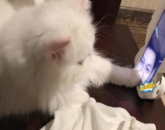 5月26日晚,范冰冰在微博晒出自己的爱猫和李晨视频的照片,照片中,范冰冰白色可爱的爱猫十分乖巧,看到李晨在手机屏幕里,就用小爪子去触碰。范冰冰还特别有爱地发文说:“这就是我们常说的父女情深