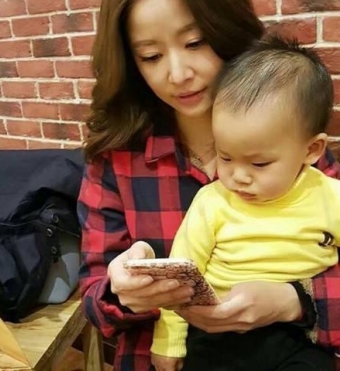 林心如初次爆出小公主正面相片,林心如和小公主一同非常仔细的看着手机,母女两人神态这些都是神同步的,从这个视点看两人非常相似。