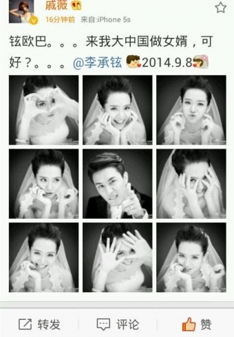 李承铉戚薇结婚照萌爆 李承铉戚薇怎么认识的 明星们都会想要拍有创意的婚纱照,不过,想到有创意的婚纱照并不是那么容易的。而李承铉戚薇的婚纱照就非常有创意,萌萌哒又怀旧!据了解,李承铉和戚薇因为拍摄MV《我们我们》相识,两人还在《我们我们》MV大跳贴