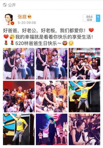 520当天张庭为老公林瑞阳举办生日会,生日会现场全程直播,现场温馨感人。