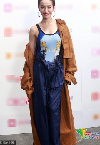 5月18日,蔡依林在北京出席某活动。现场她身穿深蓝色无袖连体裤,外面半套着一件棕色长款风衣露出半个香肩,肩膀上流畅的肌肉线条十分抢镜。再配上性感的大红唇和巨型耳环,简直美翻。不过,内搭的背心非常特别,