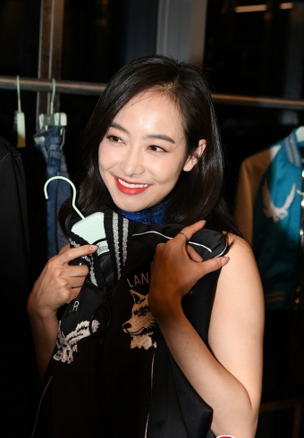 2017年5月18日讯,上海,5月18日,宋茜现身上海出席某活动。宋茜身穿蓝色无袖毛衣,大秀傲人上围,她翘起兰花指展露爽朗笑容。