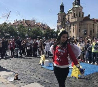 《奔跑吧》近日正在捷克录制,Angelababy在布拉格街头头戴鲜花,穿着红毛衣背着翅膀化身天使,甜美的造型与布拉格这座梦幻城市十分契合,少女感十足。Baby穿着红毛衣背着翅膀化身天使。Baby少女感十足。围观群众狂拍Baby。