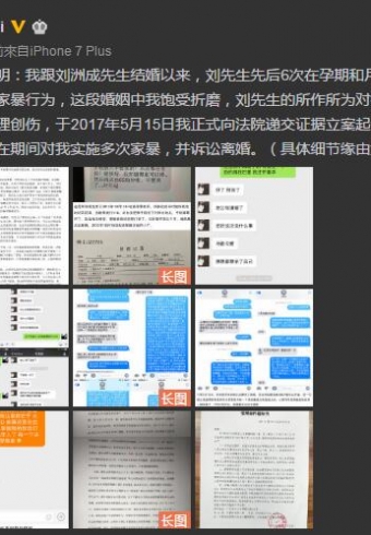凤凰网娱乐讯 5月17日上午,至上励合组合成员刘洲成妻子在微博公开发布离婚声明,控诉刘洲成先后6次在孕期和月子内对其实施严重的家暴行为,对其身心造成不可磨灭的伤害。微博原文:离婚声明:我跟刘洲成先生结