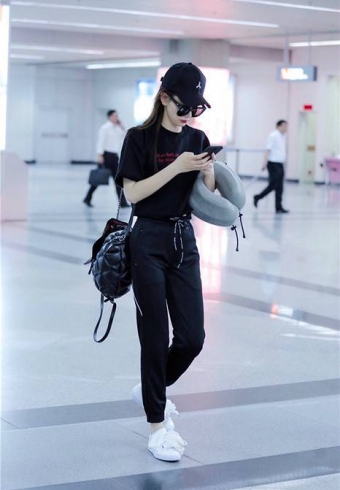 日前,戚薇现身机场,黑帽子,黑T恤、黑色运动裤,黑色双肩背包,妥妥酷感休闲风格。一身黑色这么酷,还好有小白鞋和红唇点缀色彩。也有网友留言:“虽然一身黑,但是我戚哥皮肤白啊!”不过,更引人注意的是,戚薇一手拿一个手机,网瘾少女停不下来的节奏。