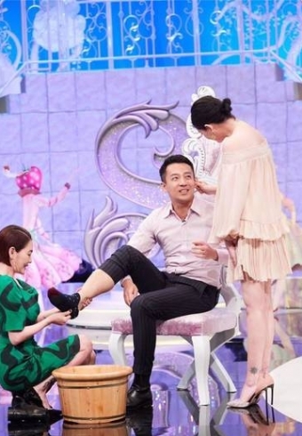 近日,一组小S与大S夫妇录节目的照片曝光,小S现场给姐夫脱袜子洗脚。照片中,小S蹲着为姐夫汪小菲脱袜子,没有一点尴尬。而站在一边的大S很不客气地揪起老公的耳朵。