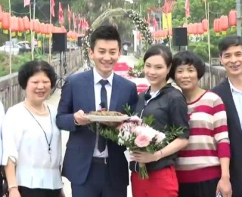 凤凰网娱乐讯 5月12日一大早,有网友偶遇吴敏霞正在录制某节目,其男友张效诚向她求婚,张效诚手拿鲜花和戒指,单膝跪地,吴敏霞双手捂住嘴很是惊喜,张效诚深情款款地对吴敏霞说:“8年了,姐姐,