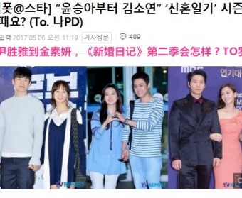 tvN综艺《新婚日记》是一档并非假想恋爱,而是邀请真正的艺人夫妇参加,展现真实新婚生活的真人秀节目。第一季的主人公就是刚刚结婚8个月的安宰贤具惠善夫妇。夫妻二人在节目中流露出的甜蜜心动以及偶尔吵架的真实生活模样,引起了大众的关注和同感。
