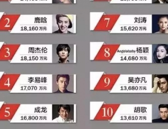 在媒体近日公布的《2017年中国名人收入榜单》上,100位名人去年一年的总收入达到70亿9530万元。虽然这份榜单是针对两岸三地的所有名人,包括歌手、演员、导演、编剧、主持人、作家、艺术家、体育明星等。