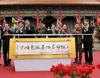 5月3日上午,我县举行金沙滩影视体验基地启动仪式暨《大破天门阵》等五部电影开机新闻发布会。