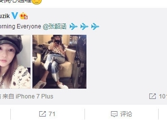 4月21日上午,张韶涵经纪人Angmuzik微博晒出一组张韶涵机场美照,和以往清纯低调的形象相比,张韶涵这次的造型可是够奢侈的,全身都是国际大品牌。