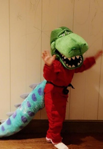 4月19日,娘娘孙俪分享了一张女儿小花妹妹的照片:“小花妹妹对我说,她是一只不会欺负人的好恐龙。”只见图中的小花妹妹满身红色,脖子套着绿色恐龙头,背后还有一条蓝色恐龙尾巴,妹妹