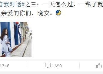 今天马苏发布 一条微博“#101次自我对话#之三:一天怎么过,一辈子就会怎么过。亲爱的你们,晚安~”