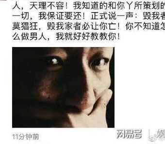女星白百何白卓伟曝光婚内出轨这件事已经被大众热议了有好几天了,但是热度还是没有减下去,今天又有网友曝光陈羽凡的朋友圈,陈羽凡在朋友圈里发文怒对卓伟:“毁我家者必让你亡”!火药味真是十分之中,看来陈羽凡是真的怒了!
