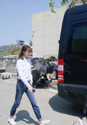 郑爽,牛仔裤搭配白色衬衣,筷子腿穿起裤子感觉要好看多了,一身朴素步伐轻快。