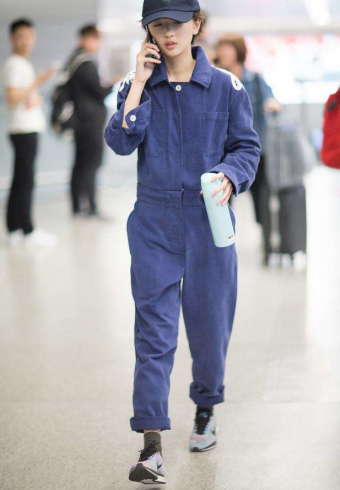 017.4.14周冬雨现身机场,一袭蓝色工装秒变帅气小男生~周冬雨帅气亮相机场,变身水电工,活捉一枚小帅T
