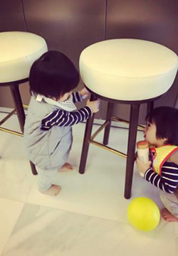 艺人张柏芝工作忙碌,但也一定会抽时间陪我两个儿子谢振轩(Lucas)和谢振南(Quintus),昨天张柏芝就回了香港,和两个孩子去了一家烹饪学校学做饼干和蛋糕。
