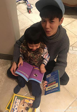 邓超微博晒出一张鹿晗抱着儿子等等的照片,并配文称,养儿防老,其乐融融。