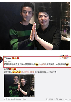 17日凌晨,刘烨在微博中晒出与赵薇的合照,并配文称:我薇,爱你。照片中,两人都是素颜出镜,脸色有些微微泛红,让网友不禁猜测他们是不是举杯畅饮了,有些喝醉了。