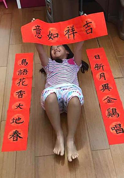 1月17日午后,刘涛晒出一双儿女写的春联,并笑称这是要,贴在门上喜气连连过大年!照片中,这边姐姐躺在地上举着自己的吉祥如意联,那边弟弟的五福临门联已经贴上了大门。