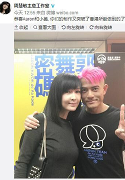 50岁天王郭富城上月底起在香港红馆一连举行15场演唱会,9月2日好友周慧敏在社交网站晒出探班影,恭喜郭富城与经纪人梁美薇(小美)又创下新的里程碑,周慧敏还秀出两人昔日合影,原来郭富城是她当年第一次出专辑拍的第一支MV男主角。
