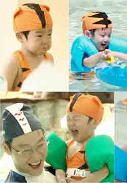 在将于本周末播出的韩国综艺节目《超人回来了》中,李辉才和双胞胎儿子书言、书俊来到游泳池游泳,两兄弟对游泳极与极的反应引发爆笑。