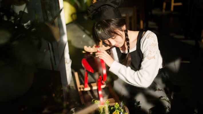 丸子头美女吊带连衣裙光滑牛奶肌写真